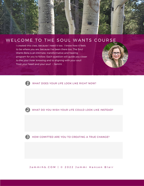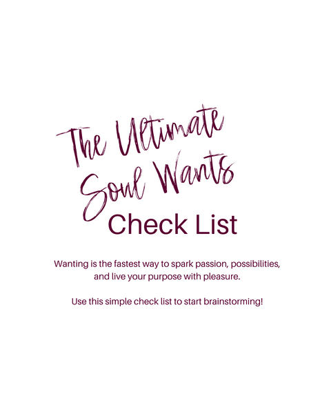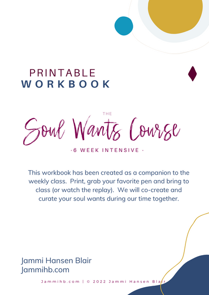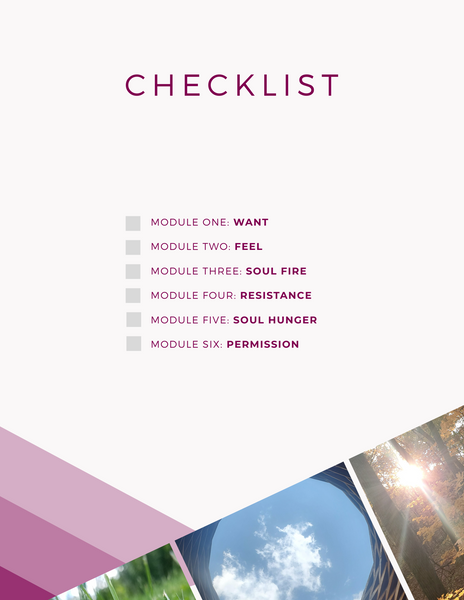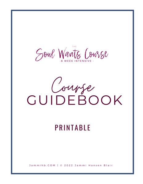 Your kickoff guidebook with an overview of The Soul Wants Course. Lessons, guides, hopes, and The Ultimate Soul Wants Check List and Cheat sheet included! A PDF downloadable from anywhere.